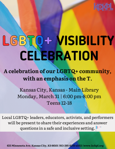 Come celebrate our LGBTQ+ community, with an emphasis on the T, this International Transgender Day of Visibility! Local LGBTQ+ leaders, educators, activists, and performers will be present to share their experiences and answer questions in a safe and inclusive setting at the Main Library. We’ll be discussing self-expression, growing up in the community, and sharing youth-focused resources. We'll also have our button maker running with a variety of templates to choose from (or make your own!) to show your support. Themed cupcakes, snacks, and pizza will be provided.