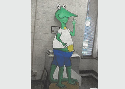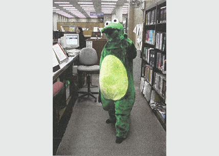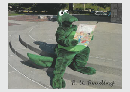 Kansas City, Kansas Public Library's mascot is a lizard named RU Reading. The lizard originated from a cooperative project with the Kansas City, Kansas Public Schools to promote reading. In support of USD 500's Just Read Program and to stimulate interest in reading, a contest was held by KCKPL to name the giant green book-loving lizard created by Main library staff member David Carleton. 6-year-old Shanna Martin won naming the lizard R.U. Reading. The happy green lizard has graced KCKPL in the form of posters, stickers, tote bags, t-shirts, library cards, keychains, coloring pages, beanie babies, and even a human-sized costume. RU Reading has become a beloved personality in the community appearing at school, civic and library events to promote the public library and reading.