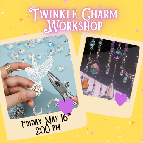 Build your very own Twinkle Charm! This workshop provides the materials and space to create a custom crystal suncatcher. You must be 13+ years old to do this craft. We will be working with metal chains, small objects, and pliers.
