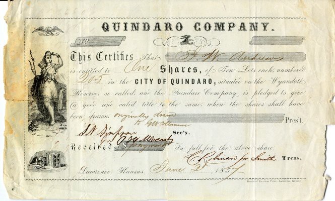 Today, we know Quindaro as a neighborhood located in north Kansas City, Kansas. Originally, Quindaro began as a town named for Nancy Brown Guthrie, whose Indian name was Quindaro.