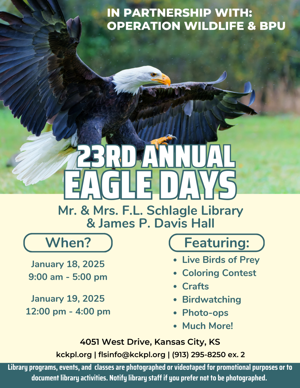 FLS Eagle Days Flyer where an adult eagle is soaring.
